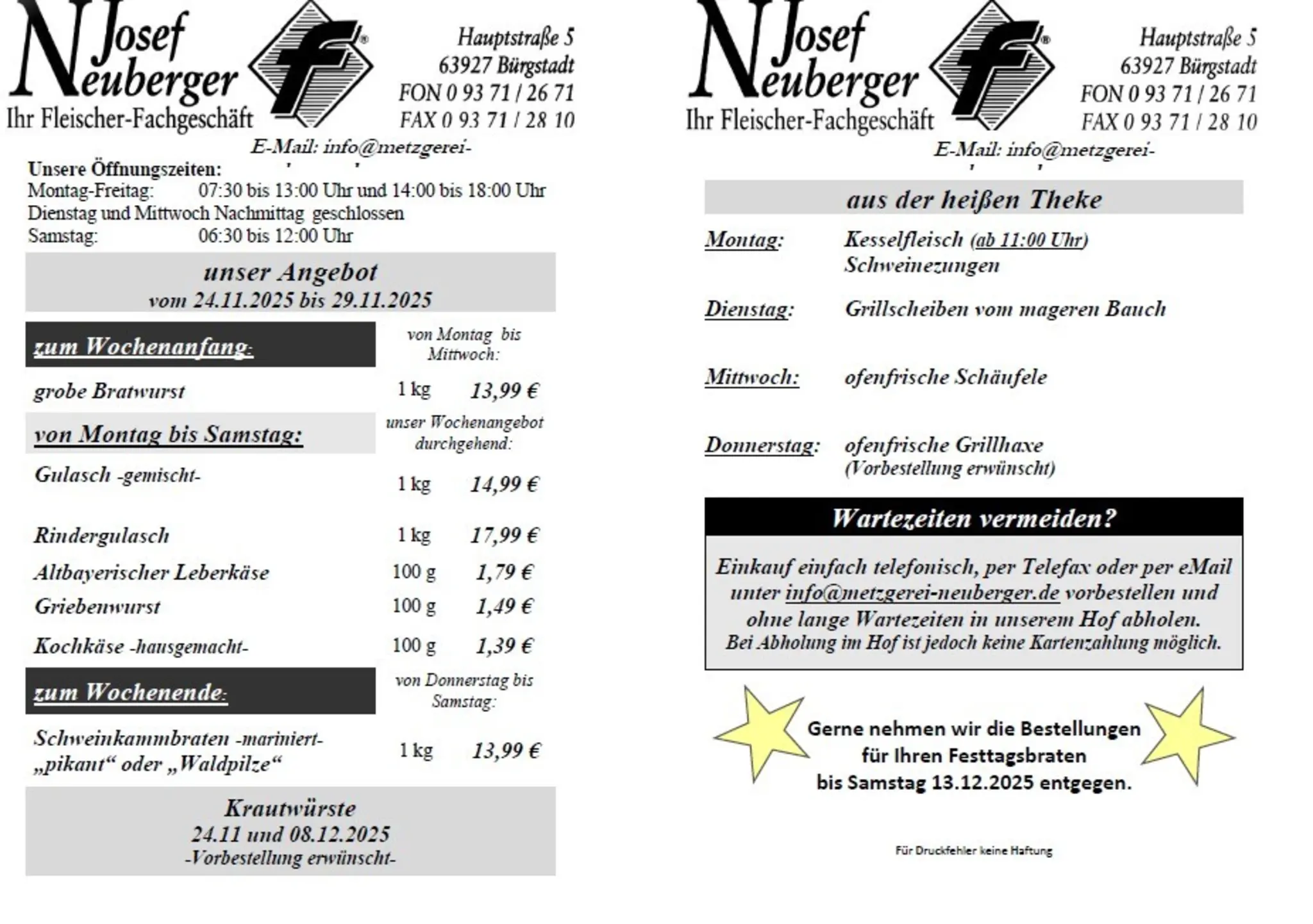 Unsere Metzgerei wurde 1964 gegründet und wird seit 2002 in 2. Generation von Metzgermeister Josef Neuberger jun. und seiner Frau Annette geleitet. Wir sind ein modernes Familienunternehmen mit einem hochmotivierten Team aus zurzeit acht Mitarbeiterinnen und Mitarbeitern.